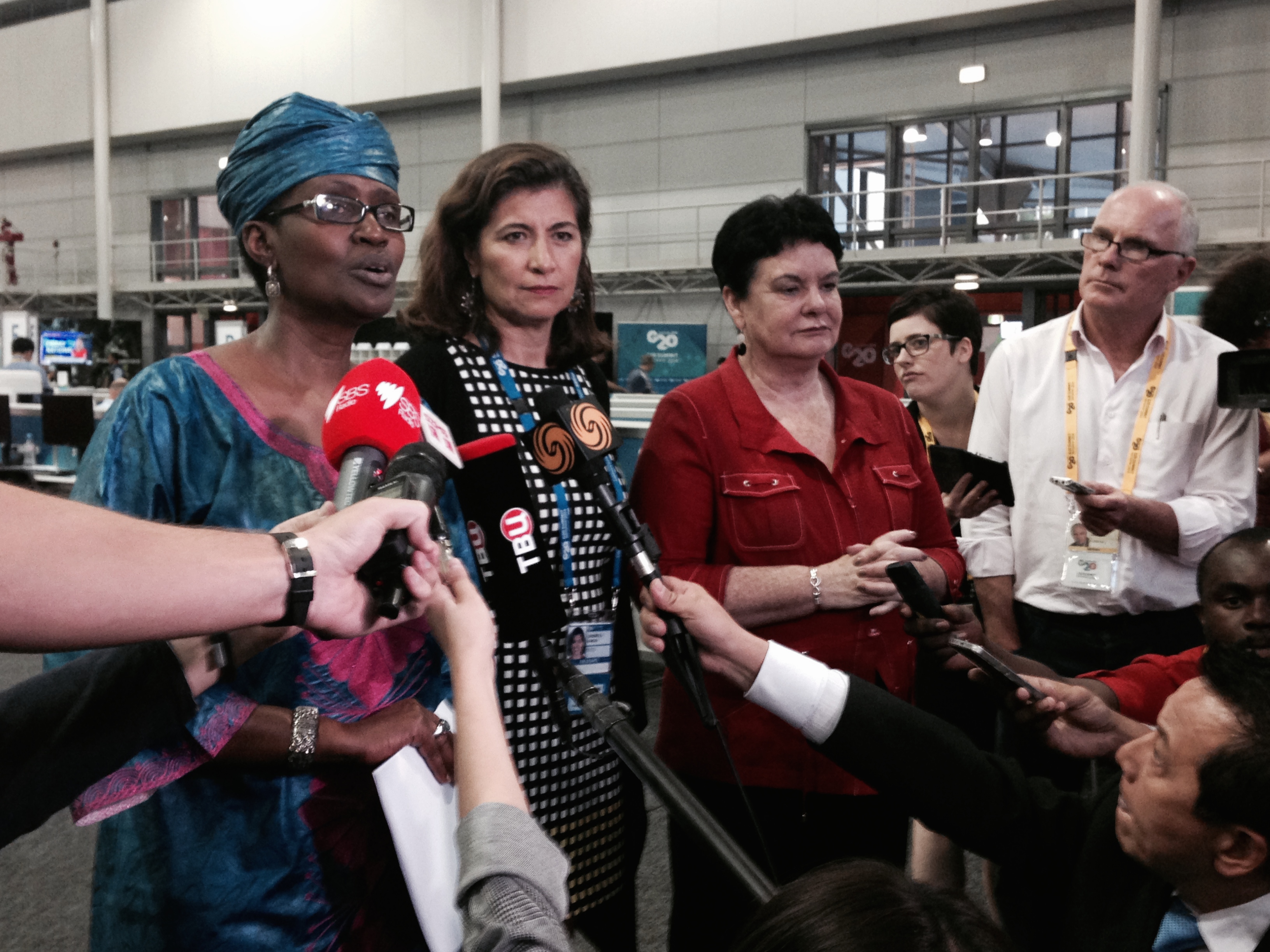 In Sierra Leone, they are fighting Ebola with few resources. But, according to OECD sherpa, Gabriela Ramos, (in the centre of the photo) six international companies operating there enjoy tax breaks that are equivalent to 800% of the country’s health budget.